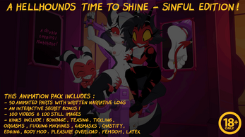 This Product includes the complete "Interactive Animation Pack" themed around the consensual and kinky binding of an excited and defiant adult hellhound!
